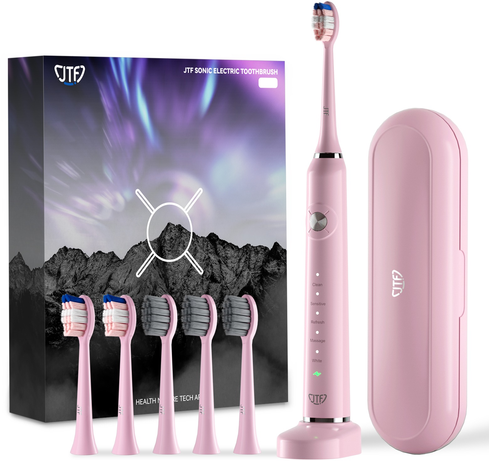 Elektrická zubná kefka – sonická, 40000 pohybov za minútu, 5 režimov, v balení 6 hlavíc, cestovné puzdro Elektrická zubná kefka JTF P200. Doprajte vašim zubom a ďasnám tú najlepšiu starostlivosť s elektrickou zubnou kefkou pre dospelých…