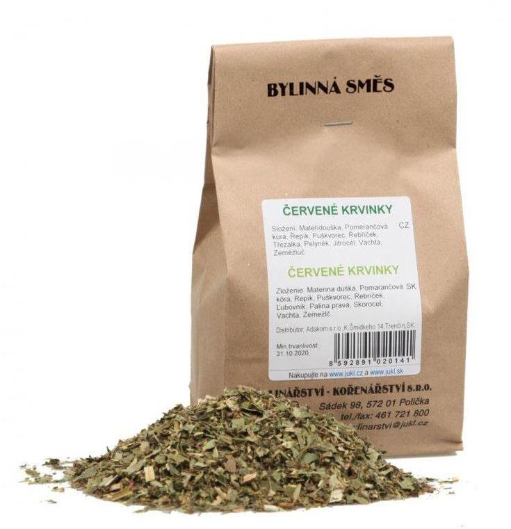 Čaj – bylinný, sypaný, čajová zmes, hmotnosť 100 g, zloženie materina dúška, rebríček a repík Jukl Červené krvinky100 gVitalita, sila, červená krvČaj Jukl Červené krvinky je tradičná bylinná zmes, ktorá je navrhnutá tak, aby priaznivo pôsobila na krvný obeh a krvné zložky, najmä červené krvink