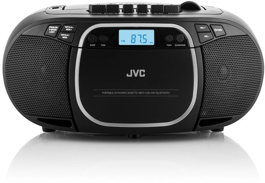 Rádiomagnetofón – s CD, kazetovým prehrávačom, klasický dizajn, prenosný, FM tuner, 30 predvolieb, podpora mp3, výkon 3,2 W, vstup USB a 3,5 mm Jack, výstup 3,5 mm Jack, automatické ladenie, možnosť pripojenia cez Bluetooth, displej, batériové napájanie, sieťové napájanie, na 6 batérií, rozmery 144 × 285 × 208 mm (V׊×H), hmotnosť 1,7 kg, čierna farba Rádiomagnetofón s CD JVC RC E451BRádiomagnetofón JVC RC E451B vám umožní počúvanie staníc FM vo vysokej kvalite. Rádio ponúka tiež možnosť bezdrôtového streamovania hudby cez Bluetooth 5.0, takže ho v
