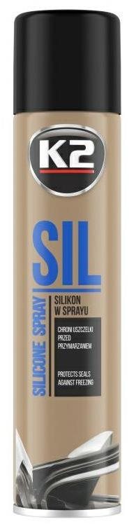 Olej – na údržbu a ošetrenie prvkov z gumy a plastu, napríklad tesnenia vo dverách vozidla Silikónový olej K2 SIL s objemom 300 ml je veľmi účinný pri údržbe rôznych častí automobilu. Je odolný voči teplotám do 250 °C a je možné ho použiť aj na ochranu gumového tesnenia proti mrazu. Silikón