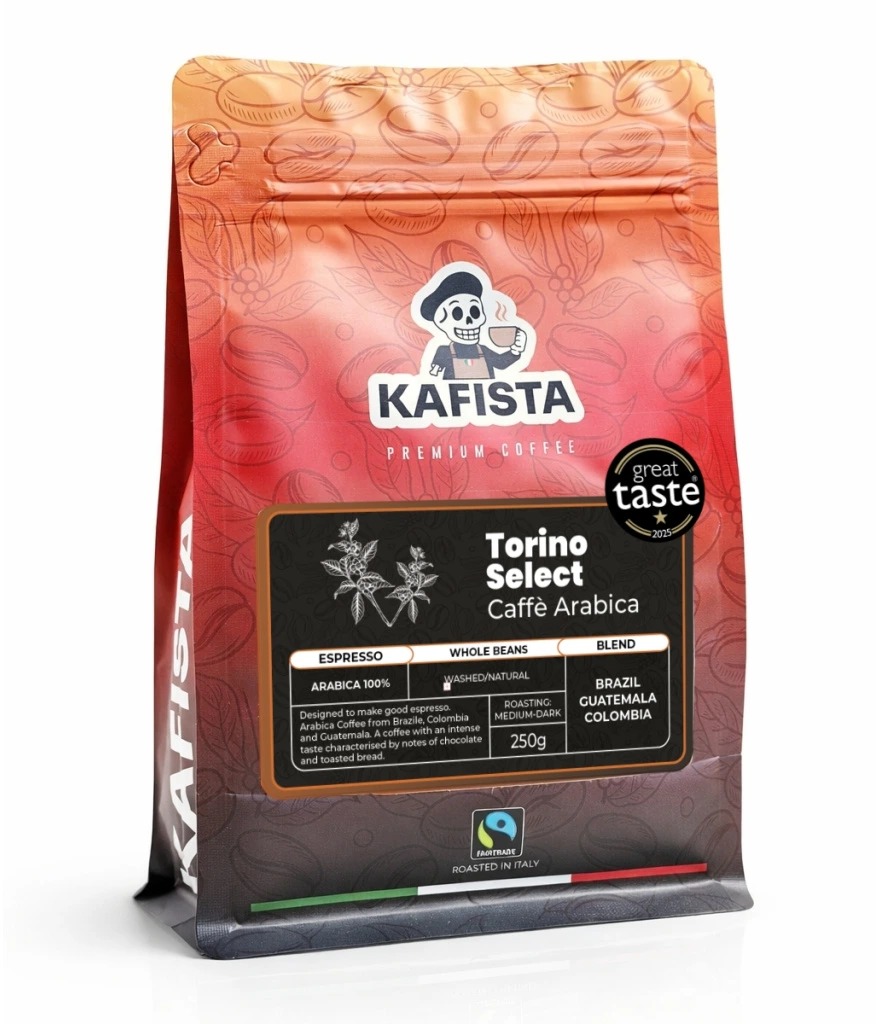 Kafista „Torino Select“ – Zrnková káva, 100 % Arabica Espresso Káva, Pražená v Taliansku 250 g