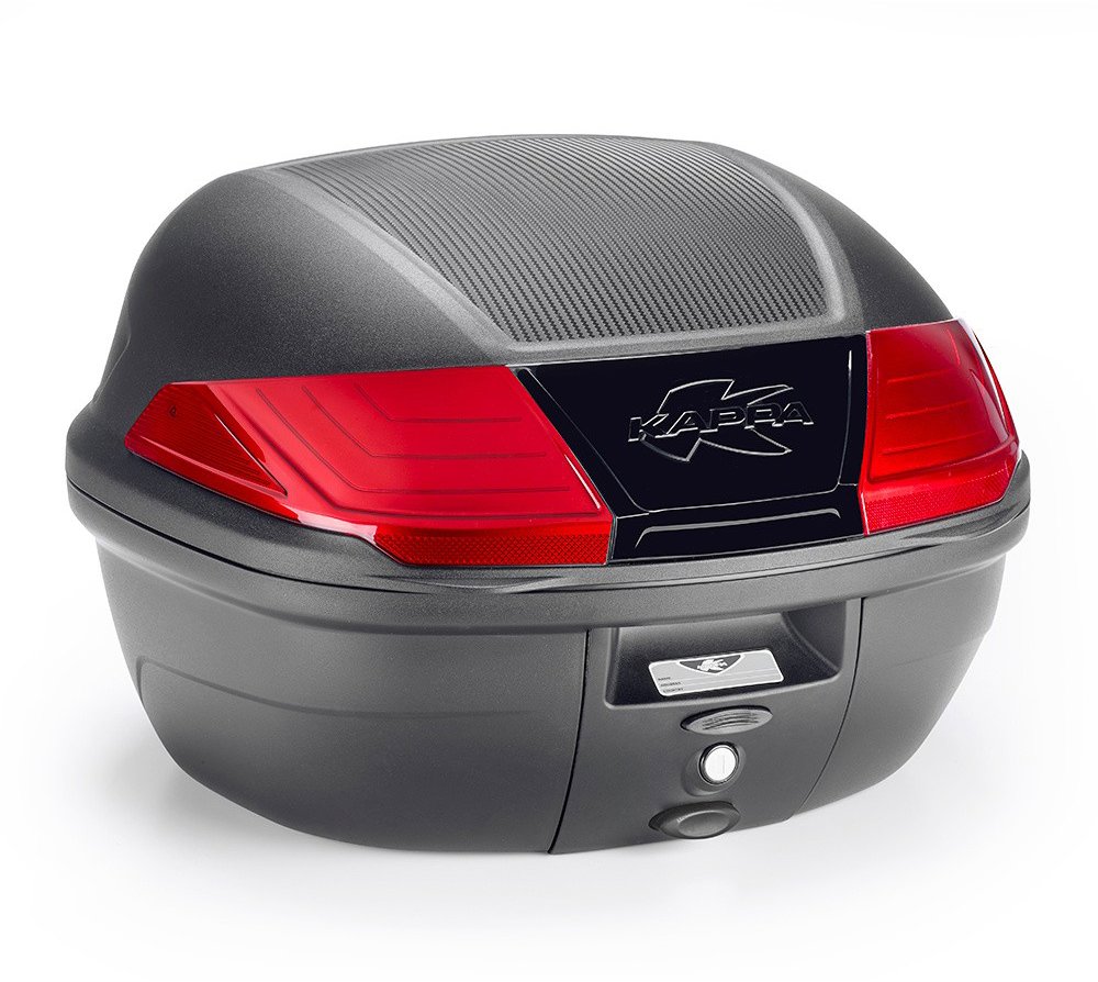 Kufor na motorku – na platňu, materiál plast, uzamykateľný, montážny systém monolock, platňa je súčasťou balenia, objem 40 l, rozmery 49,8 × 33,1 × 43,5 cm (V׊×D), na 1 prilbu Vrchní kufr s uchycením MONOLOCK® o objemu 40 litrů, vybavený tlakovým uzávěrem víka, s exkluzivní estetikou charakterizovanou přítomností červeného reflektoru lakovaného zevnitř a středového plátu v
