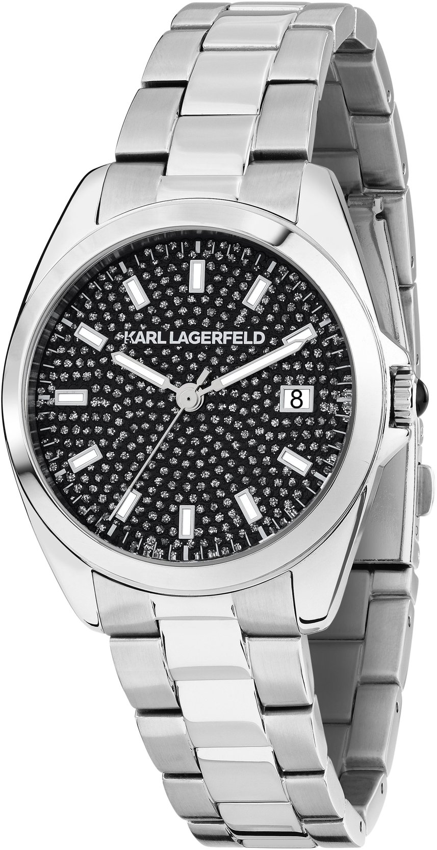 Hodinky dámske – analógové zobrazenie času, strojček quartz, okrúhly ciferník, dátum, elegantné, bez číslovania, minerálne sklíčko, vodotesnosť 50 m (5 ATM), materiál puzdra nehrdzavejúca oceľ, strieborná farba puzdra, materiál remienka nehrdzavejúca oceľ, strieborná farba remienka KARL LAGERFELD Round Essentials R0553101508 sú prepracované dámske hodinky vhodné pre všetkých, ktorí chcú efektívne organizovať svoj čas a majú štýl. Tvorí ich okrúhly ciferník široký 35 mm. Strojček