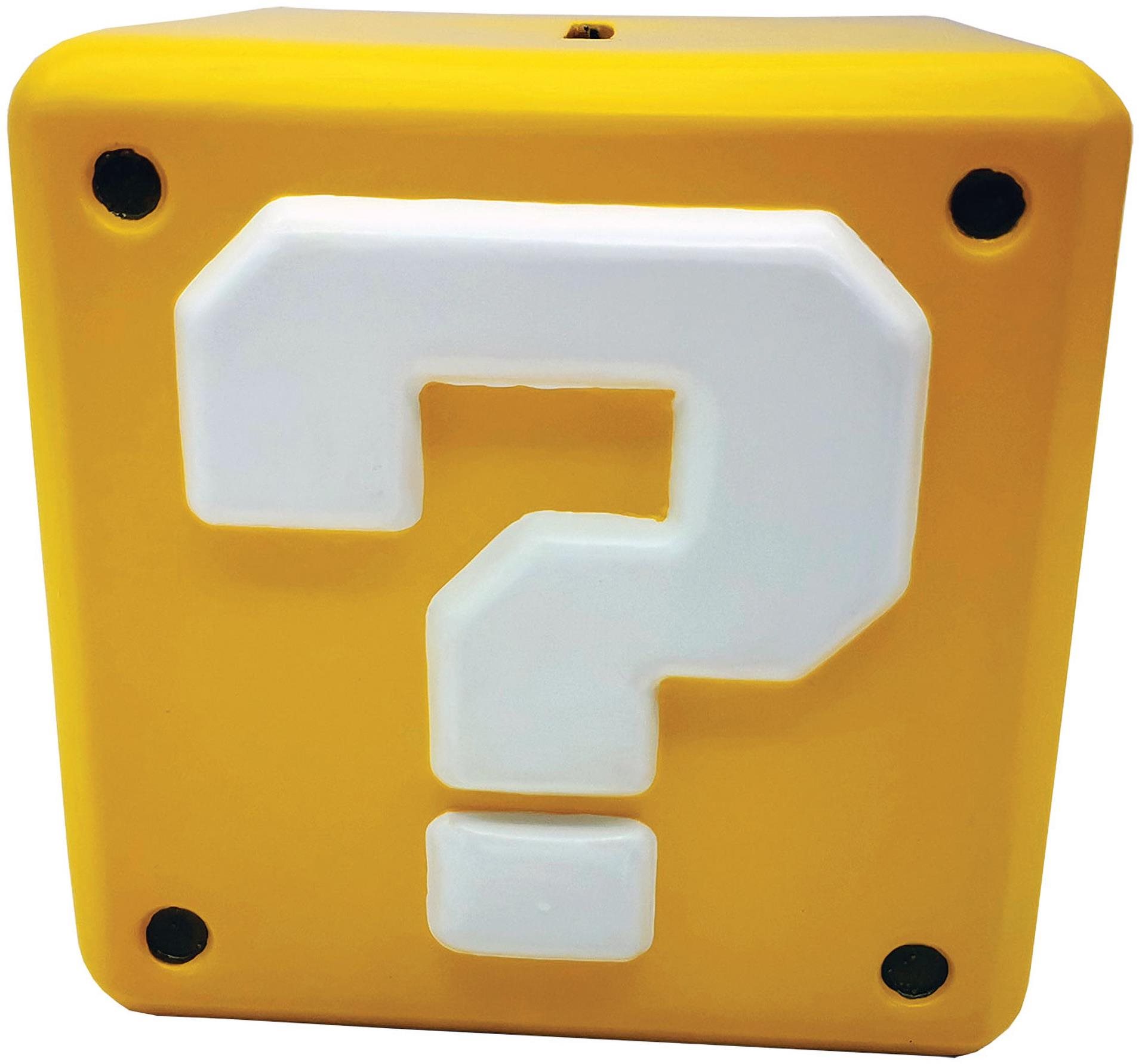 Pokladnička pre deti – vhodná na mince a bankovky, keramická, séria Super Mario, rozmery 12,7 × 15,2 × 15,3 cm (V׊×H), biela, čierna a žltá farba Kľúčové vlastnosti keramickej pokladničky Super MarioOriginálny dizajn inšpirovaný svetom Super Mario, konkrétne ikonickým blokom s otáznikomV hornej časti pokladničky je otvor na mince, ktoré ľahko v