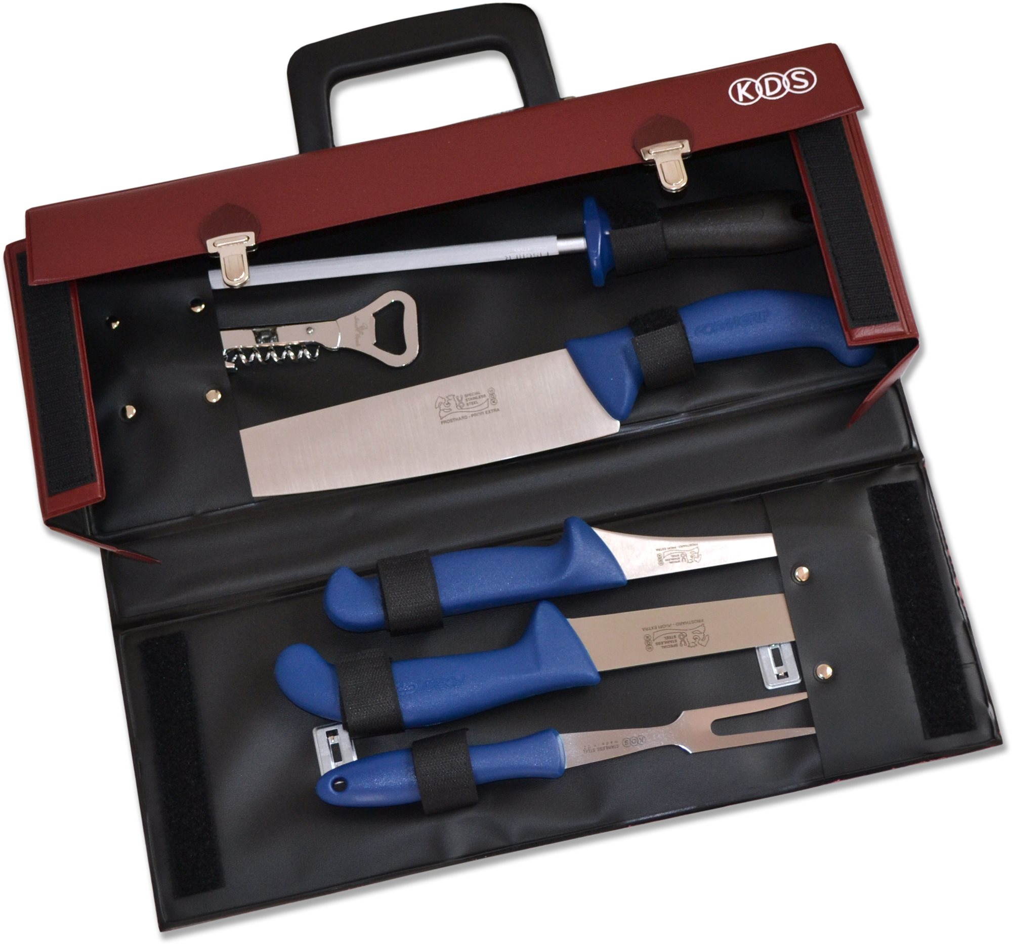 Sada nožov – kuchársky nôž, porciovací nôž a vykosťovací nôž, materiál čepele nehrdzavejúca oceľ, ocieľka súčasťou balenia, 6 kusov v súprave Kľúčové vlastnosti súpravy nožov KDS, súprava kuchárska6 kusov v súpraveNože z radu Profi LineMateriál čepele je nehrdzavejúca oceľHmotnosť balenia je 1 350 gRozmery balenia sú 160 × 45 × 400 mmObsah