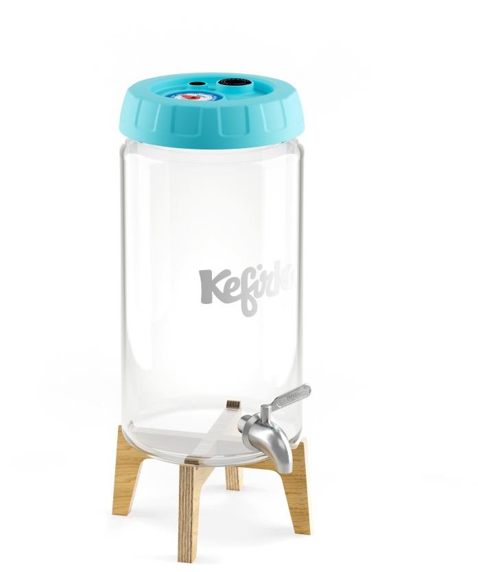 Fermentor – na kombuchu, kvasná nádoba, fermentačné hodiny, stojan a výčap súčasťou, objem 4000 ml, výška 38 cm, priemer 15,5 cm Fermentor so stojanom a výčapom Kefirko Kombucha v modrom vyhotovení je určený na prípravu domácej kombuchy s minimálnou námahou. Obsahuje sklenenú nádobu s mierkami, viečko z bioplastu s aktívnym uhl