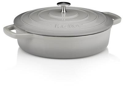 Kastról – smaltovaný, vhodný na plynovú, elektrickú, indukčnú a sklokeramickú varnú dosku, okrúhly tvar, objem 3,2 l, liatinová rukoväť, použitie v rúre a možnosť umývania v umývačke, výška 7 cm, priemer 28 cm, pokrievka v balení, sivá farba Radi by ste zlepšili vaše kuchárske zručnosti? Kastról Kela je to, čo vám chýba vo vašom vybavení. Kvalitný kastról s objemom3,2 lbude neoceniteľným pomocníkom vo vašej kuchyni. Medzi plusy kastróla
