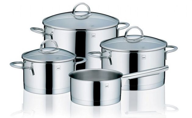 Sada riadu na varenie – na plynovú, elektrickú, indukčnú, sklokeramickú a halogénovú varnú dosku, 4 hrnce v súprave, možnosť použitia neostrého kovového náčinia, použitie v rúre a možnosť umývania v umývačke, maximálna teplota na pečenie…