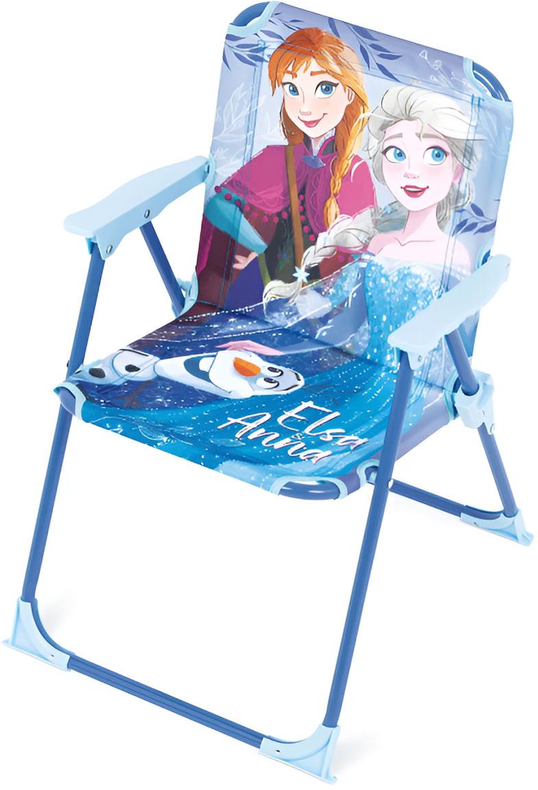 Kempingová stolička – nosnosť 35 kg, modrá farba, hmotnosť 0,9 kg, rozmery 53 × 32 × 38 cm (V׊×D) Skladacia kempingová stolička v limitovanej edícii Disney/Frozen, ktorú si vaše deti obľúbia. Je vyrobená z kovovej rozkladacej konštrukcie s polyesterovým poťahom a motívom obľúbených princezien. Sto