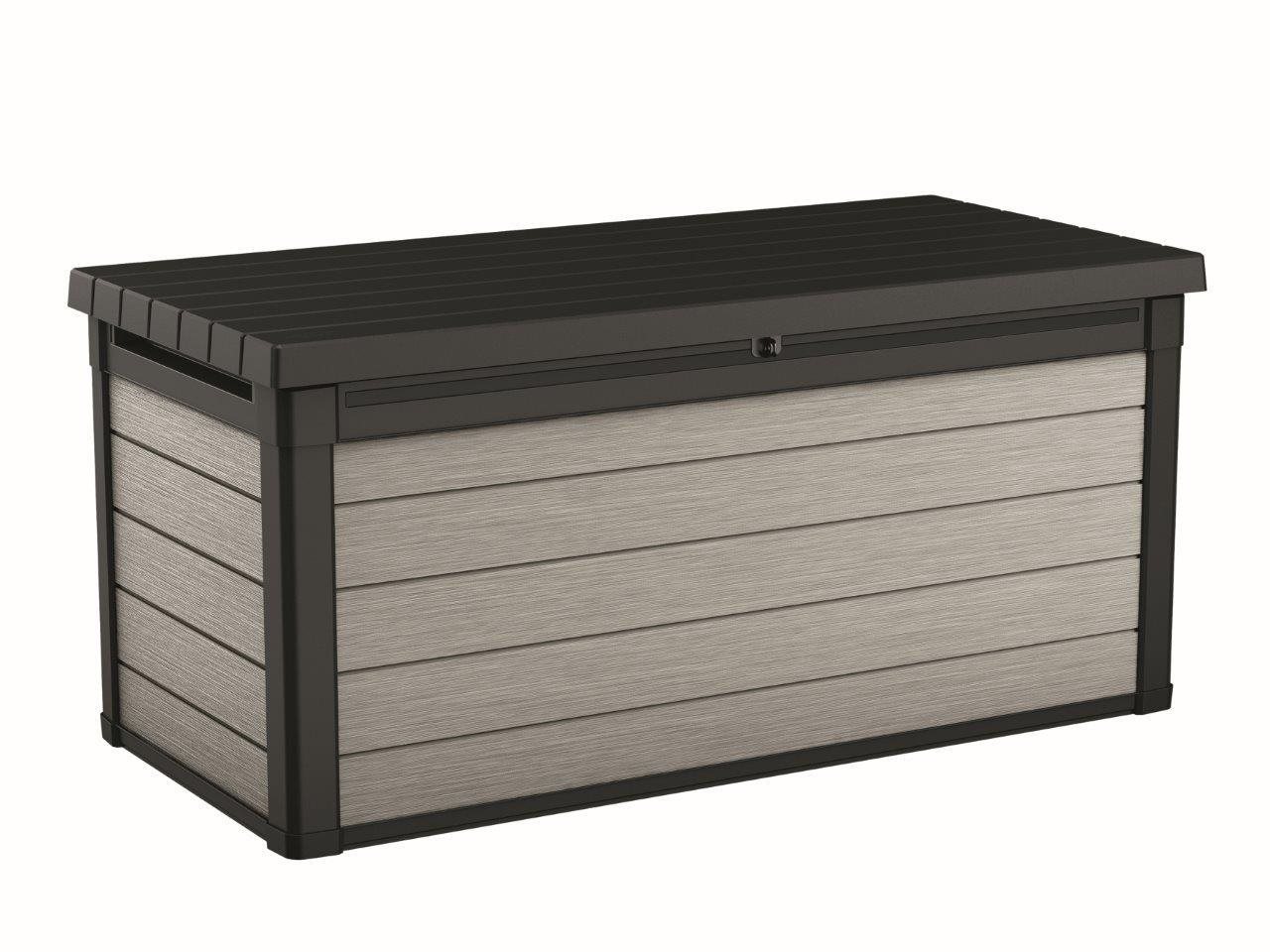 Záhradný box – plastový, vhodný na sedenie, objem 570 l, odolný proti poveternostným vplyvom, hrdzi a hnilobe, 2 miesta na sedenie, nosnosť vnútorného priestoru boxu 75 kg, nosnosť veka 300 kg, imitácia dreva, hnedá, sivá a čierna farba Záhradný box Keter s objemom 570 l pojme vďaka svojim väčším rozmerom aj objemnejšie vybavenie a skvele poslúži na organizáciu všetkého, čo potrebujete mať vonku poruke. Plastová konštrukcia je ľahká,