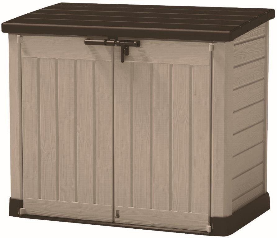 Záhradný box – plastový, uzamykateľný, objem 1200 l, odolný proti UV žiareniu a poveternostným vplyvom, nosnosť vnútorného priestoru boxu 150 kg, imitácia dreva, hnedá a béžová farba Záhradný box Keter s objemom 1200 l udrží vaše náradie a záhradné doplnky v suchu a poruke. Plastová konštrukcia je ľahká, nenáročná na údržbu a veľmi ľahko sa čistí. Je odolný voči poveternostným pod