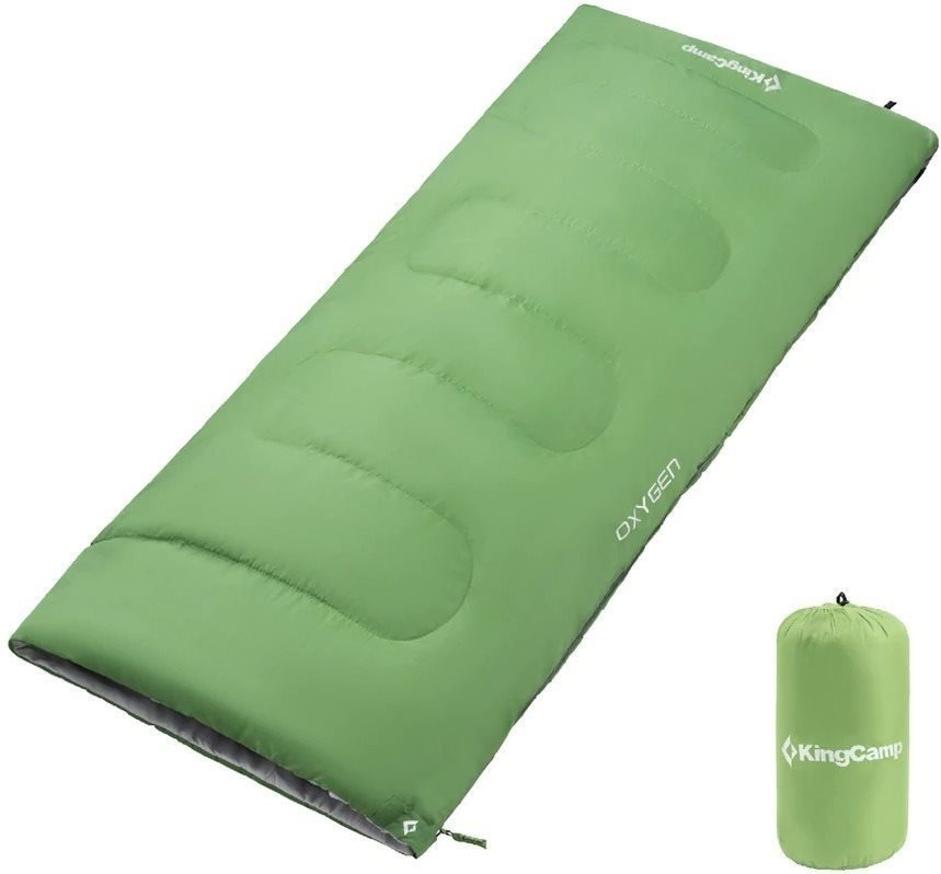 Spací vak – dekový, letný, unisex, výplň duté vlákno, komfortná teplota 17 °C, limitná teplota 13 °C, maximálna výška postavy 170 cm, dĺžka zbaleného vaku 34 cm, priemer zbaleného vaku 19 cm, zelená farba, hmotnosť 1000 g Spací vak KingCamp Oxygen 200M green bude vyhovovať mužom aj ženám. Výplň spacieho vaku tvorí duté vlákno. Duté vlákna si dokážu poradiť s vlhkosťou, majú výbornú trvanlivosť, a navyše nespôsobia komp