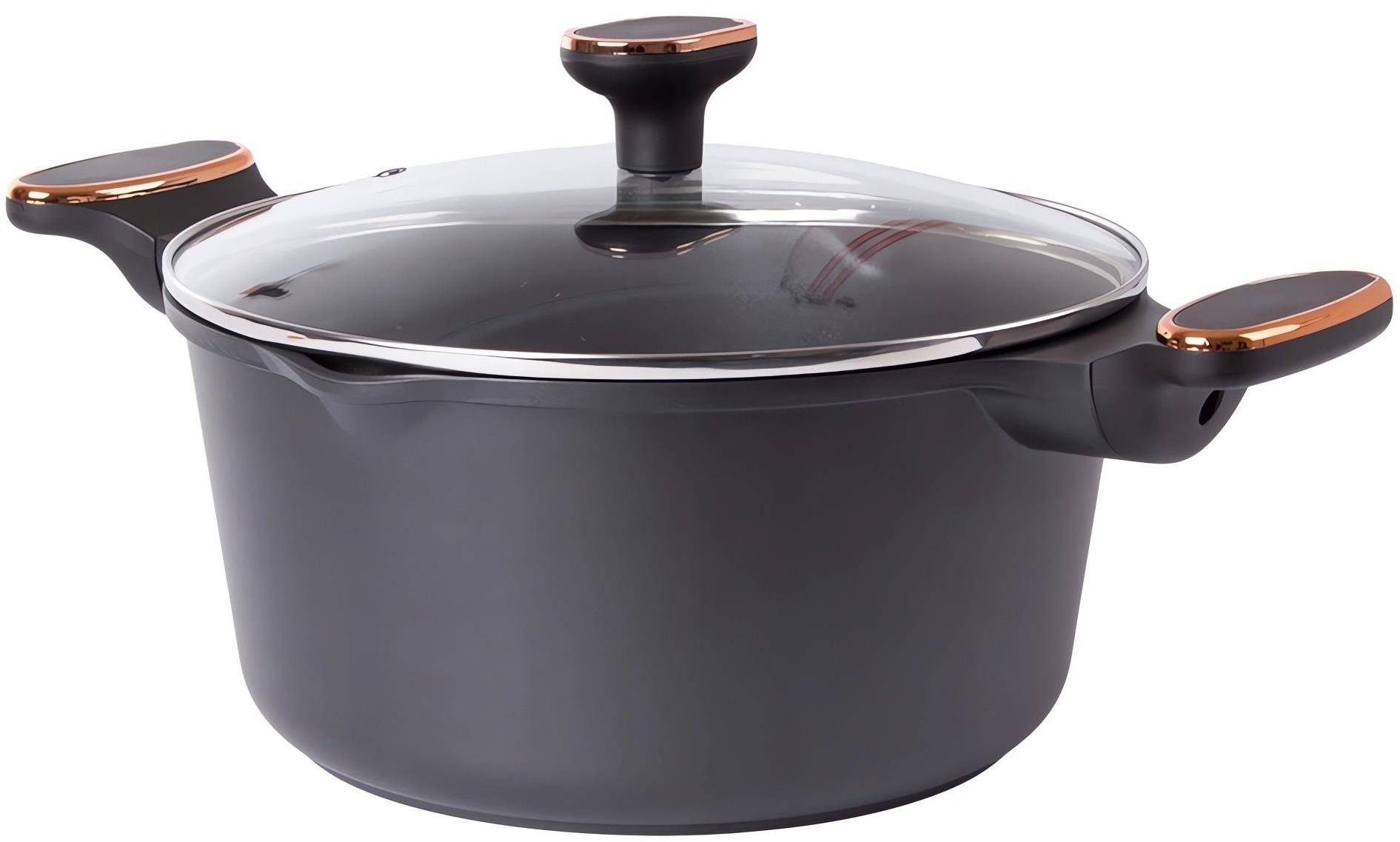 Hrniec – vhodný na plynovú, elektrickú, indukčnú, sklokeramickú a halogénovú varnú dosku, okrúhly tvar, objem 4,55 l, hliníková rukoväť, hrubé dno, nepriľnavý povrch, rozmery 12 × 38 cm (V×D), priemer 26,5 cm, pokrievka v balení, čierna farba Hrniec s pokrievkou KingStyle s objemom 4,55 litra je vyrobený z vysoko kvalitnej hliníkovej zliatiny, ktorá bola odliata pod tlakom. Hrniec je ideálny na varenie na indukčných, plynových, sklokeramic