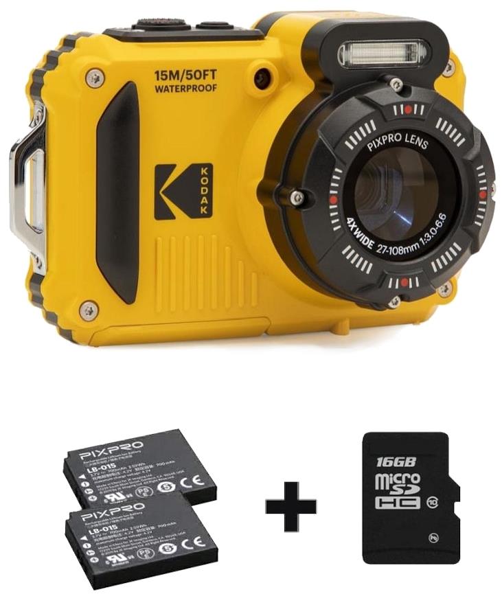 Digitálny fotoaparát – outdoor, 1/2,3″ 16,35 Mpx, elektronická (EIS) stabilizácia obrazu, max. rýchlosť frekvenčného snímania 6 sn./s, Full HD Kompakt Kodak WPZ2 Yellow bundleŠportové vyhotovenie na každé dobrodružstvoDigitálny fotoaparát Kodak WPZ2 je ideálnym spoločníkom, ktorý sa nebojí vody. Nárazuvzdorný, prachuvzdorný a pripravený na k
