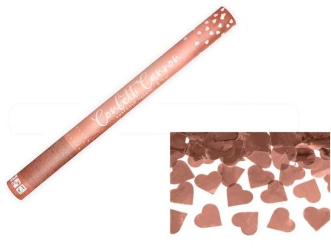 Konfety – vystreľovacie, vhodnou príležitosťou je svadba a oslava, srdiečka, metalické, plastové, zlatá farba, veľkosť tubusu 60 cm Vystreľovacie konfety PARTYKONF zaistia efektný výstrel, ktorý zaručene zaujme hostí a dodá každej oslave originálny okamih. Sú plastové. Svetlo na ich metalickom povrchu vytvára zaujímavé vizuálne ef
