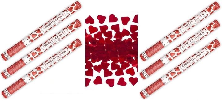 Konfety – vystreľovacie, vhodnou príležitosťou je svadba, oslava a večierok, srdiečka, metalické, plastové, červená farba, 6 kusov v balení, veľkosť tubusu 60 cm Vystreľovacie konfety PARTYKONF spestria každú narodeninovú oslavu, párty alebo firemný večierok a…