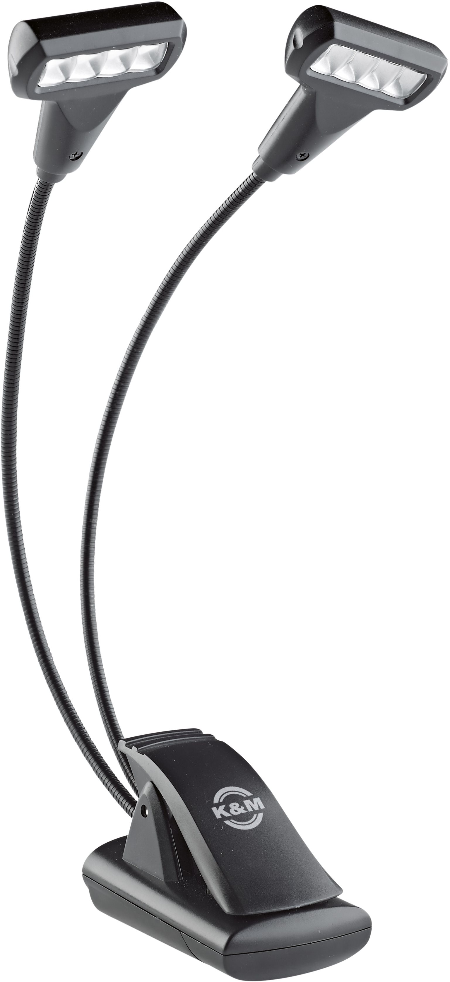 Lampička na noty – klipsová, rameno husí krk, integrované LED svetlo, na 3 AAA batérie, čierna farba Lampička na noty König & Meyer bude skvelou pomôckou pri hraní na hudobný nástroj. Slúži na osvietenie nôt, z ktorých hráte, ale na rozdiel od iných druhov svetla na nich nezanecháva tiene. Tento mode