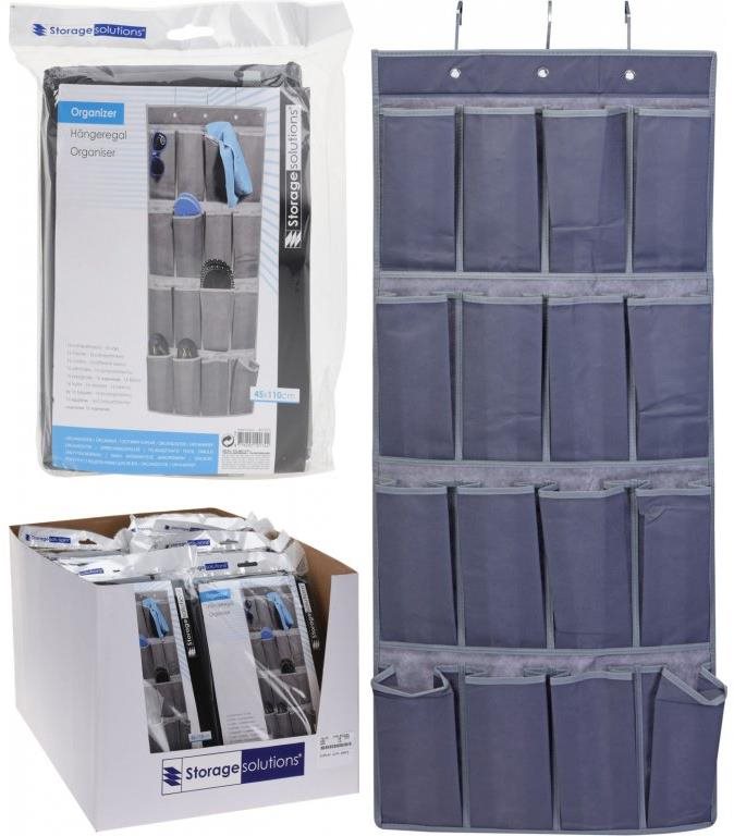Organizér – 16 přihrádek, zavěšení na háčky, materiál netkaná textilie, rozměry 110 × 45 × 45 cm (V׊×H), šedá barva Zásadní přednosti produktu Koopman Závěsný organizér 16 kapes Závěsný organizér Koopman nabídne místo na uložení různých věcí Pomůže s udržením pořádku ve vaší domácnosti Materiálem pro zhotovení je n