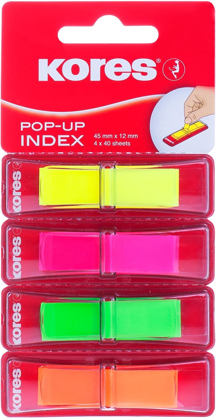 KORES Pop-up 45 × 12 mm, 4 × 40 lístkov, neónový mix
