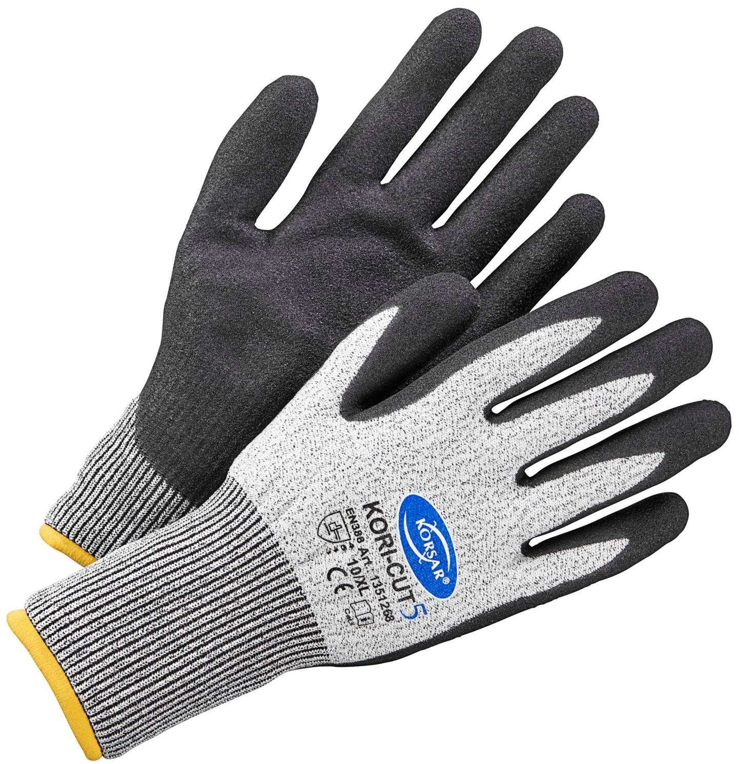 Pracovné rukavice – pánske, máčané (nitril), protirezná ochrana EN 388: úroveň 5, veľkosť 11, sivá a čierna farba Kľúčové vlastnosti pracovných rukavíc Korsar Kori-Cut 5 neprerezateľné trieda 5 jeden pár veľkosť 11 Pánske pracovné rukavice KORSAR znižujú riziko zranenia Nitrilová vrstva poskytuje efektívnu ochran