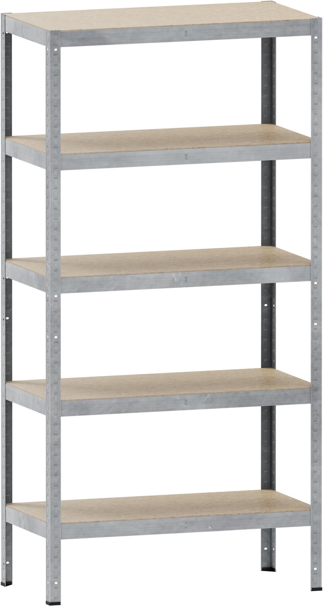 Regál – kovový, policový, do garáže a dielne, 5 políc, nosnosť police 100 kg, béžová farba políc, celková nosnosť 500 kg, pozinkovaný povrch, bezskrutkový, strieborná farba konštrukcie, rozmery 180 × 90 × 40 cm (V׊×H) Štandardný regál s nosnosťou až 100 kg na polici, ktorý má v interiéri široké využitie. Vďaka ľahkému prenastaveniu políc zaistí prehľadné uskladnenie presne podľa vašich požiadaviek. Použitý materiál