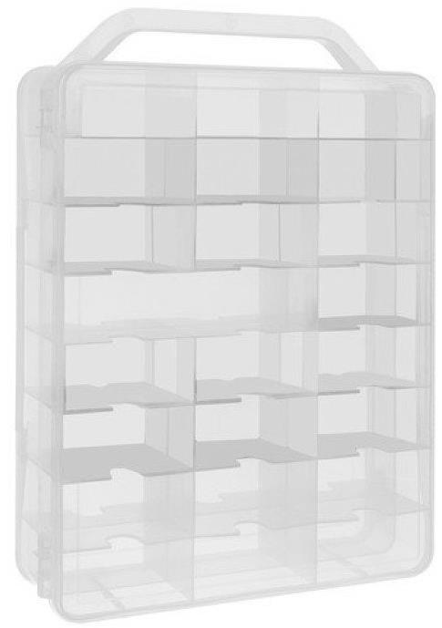 Úložný box – umožní vystavit modely aut a další kolekce, materiál plast, počet přihrádek 46, rozměr velké přihrádky 16 × 3,9 cm, velikost malé přihrádky 7,9 × 3,9 cm, rozměry kufru 33 × 25 ×…