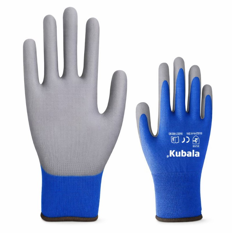 Pracovné rukavice – unisex, dielenské, dotykové, máčané (polyuretán), veľkosť 10, modrá a sivá farba Pracovné rukavice KUBALA prispievajú k prevencii úrazov, ktoré môžu vzniknúť počas rôznych činností. Tieto unisex dielenské rukavice umožňujú precíznu prácu a bezpečné používanie nástrojov. Kombinácia