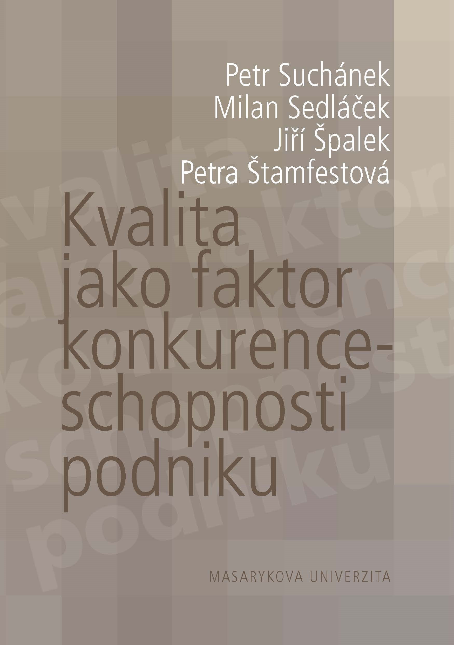Elektronická kniha – autor Petra Štamfestová, 132 stran, česky Publikace je výsledkem tříletého sledování vztahu českých podniků ke kvalitě, zejména jejich uvědomění si skutečnosti, že kvalita jejich produktů je faktorem konkurenceschopnosti celého podniku. Výzku