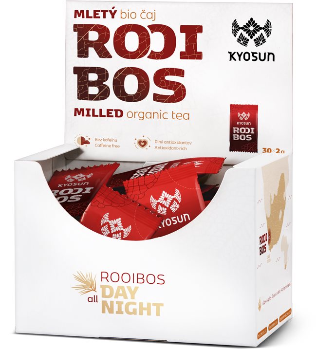 Čaj – rooibos, vrecká, jednodruhový, hmotnosť 60 g Zmena farebného štýlu šablóny pre športovú výživuKyosun Bio rooibos 30× 2 gKyosun Bio rooibos vyniká svojou sladkastou chuťou, je preto vhodné ho piť nielen samotný, ale rovnako tak ho môžete pridať d