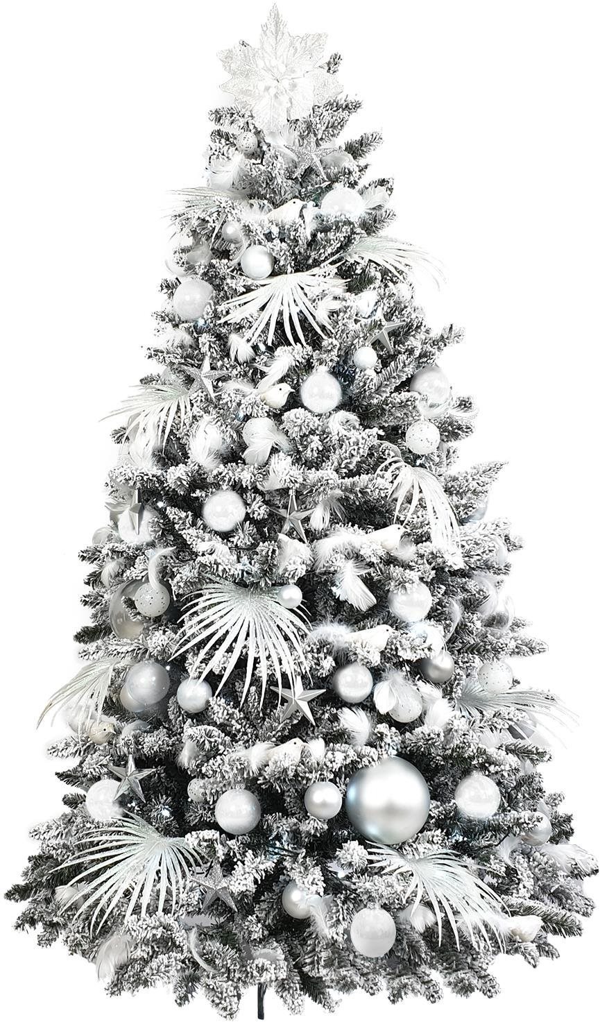 Vianočný stromček – umelý, jedle s 2D ihličím, biely, výška 210 cm, šírka 127 cm, do interiéru, vo výbave stojan, ozdoby a zasneženie, biela a strieborná farba ozdôb Prečo si zaobstarať stromček? Okrem stromčeka obdržíte aj kompletnú súpravu na ozdobenie, ktorá s dizajnom stromčeka dokonale ladí. Vetvy sú pripevnené ku kmeňu a stačí ich ľahko roztvoriť.