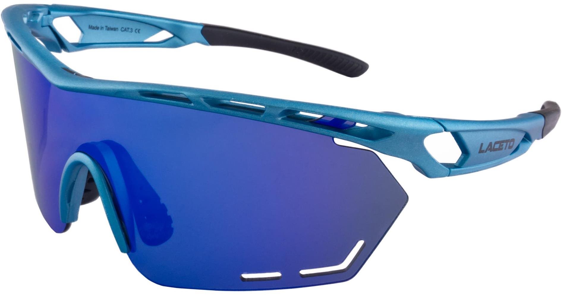 Slnečné okuliare – unisex, cyklistické, ochrana UV400, modrá farba skiel, plastový rámik, modrá farba rámika Slnečné okuliare Laceto chránia vaše oči pri pobyte na slnku. Sklá so svetelnou priepustnosťou S3 efektívne chránia oči pred silným slnkom a intenzívnym žiarením. Plastové obrúčky sú zároveň ľahké aj