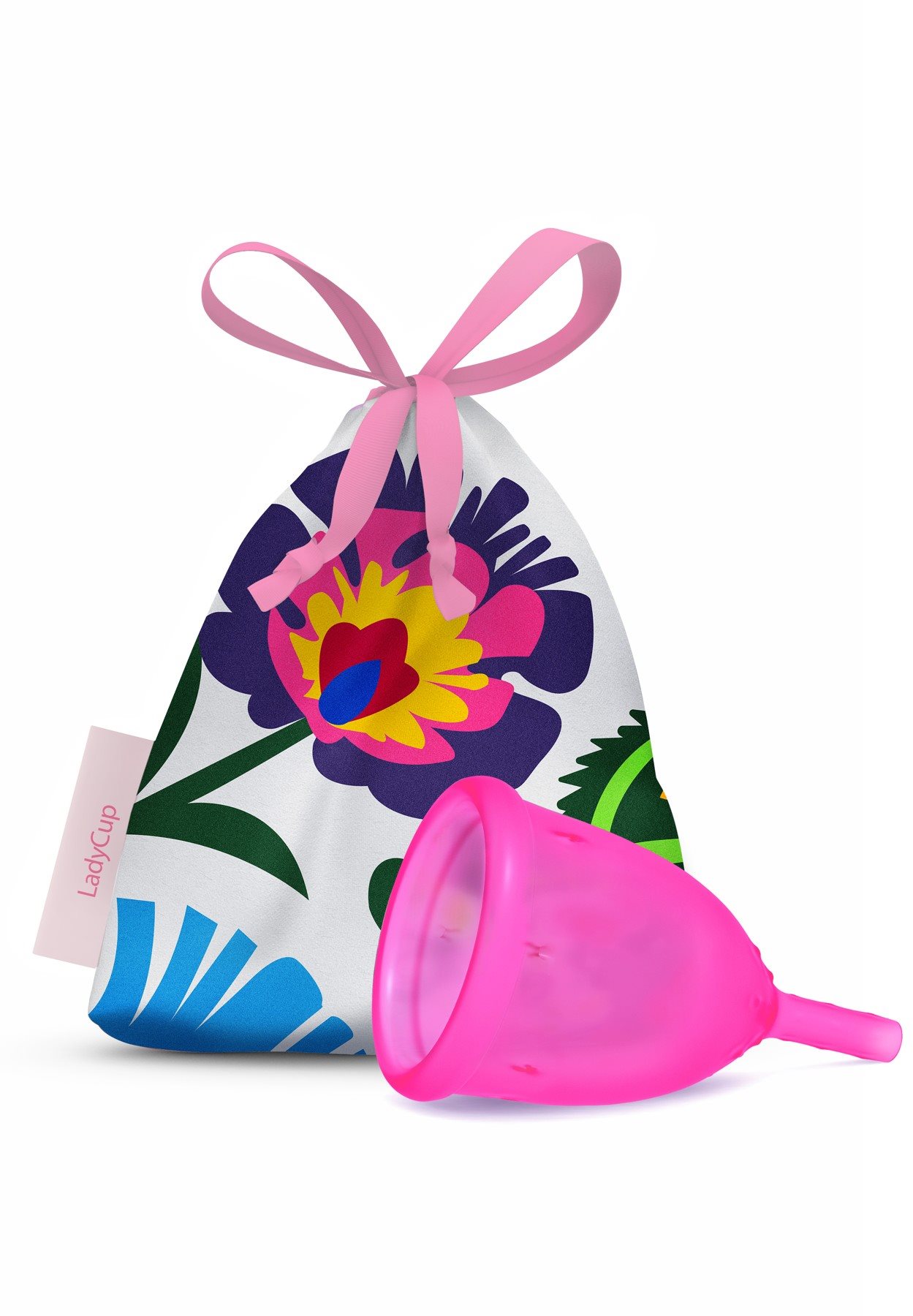 Menštruačný kalíšok – vhodný do 30 rokov, veľkosť S, pre stredné krvácanie, zakončený stopkou, materiál lekársky silikón, dezinfekčné vrecko súčasťou balenia, objem 21,2 ml, ružová farba Menštruačný kalíšok LadyCup má hladký povrch, na ktorom nezostávajú baktérie. Neabsorbuje tiež žiadne kvapaliny. Z týchto dôvodov nedochádza k zmenám prirodzeného vaginálneho prostredia. Na jeho vnúto