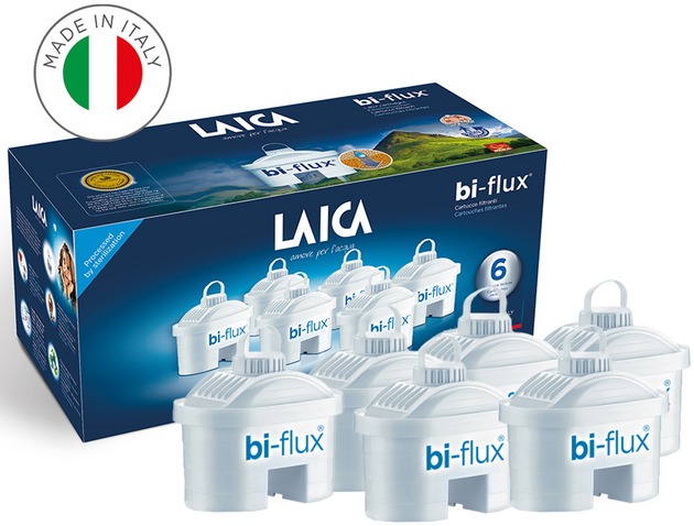 Filter do kanvice kapacita filtra 150 l, stupne filtrácie: 5, 6 ks v balení Nová generácia filtrov Laica BI-Flux využíva jedinečnú päťstupňovú filtračnú technológiu, ktorá je až o 30 % účinnejšia ako bežné filtre. Všetky filtre Laica sa vyrábajú v Taliansku a celý výrobný pro