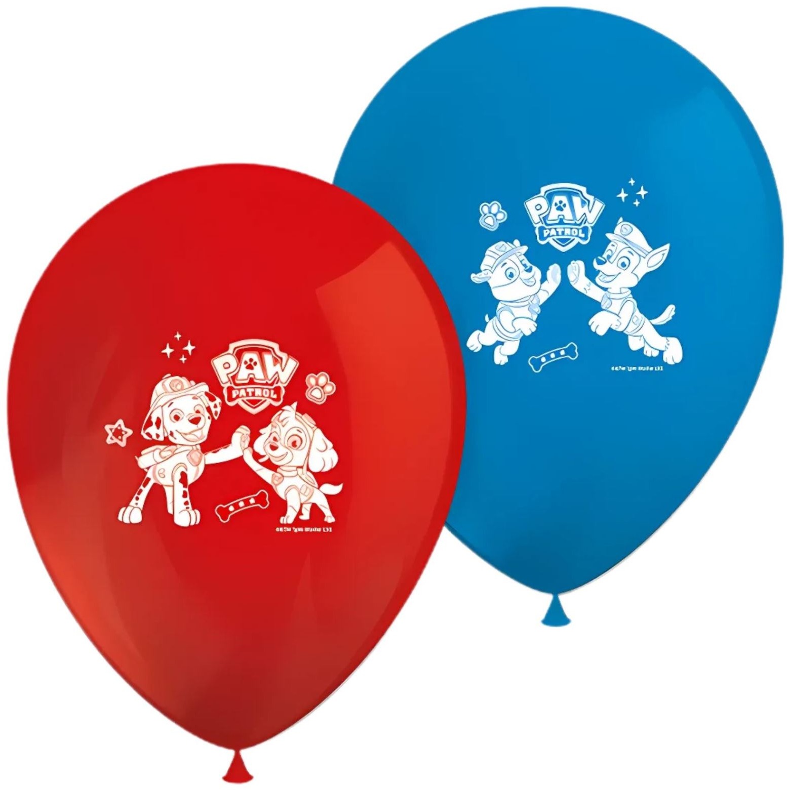 Balóny – 8 kusov v balení, nafukovacie, klasické, okrúhle, veľkosť 25 cm, s potlačou, materiál latex, nafúknutie možné ústami, slamkou/pumpičkou a héliom, červená a modrá farba, poznáte z Labková patrola (Paw Patrol), na narodeniny, na…