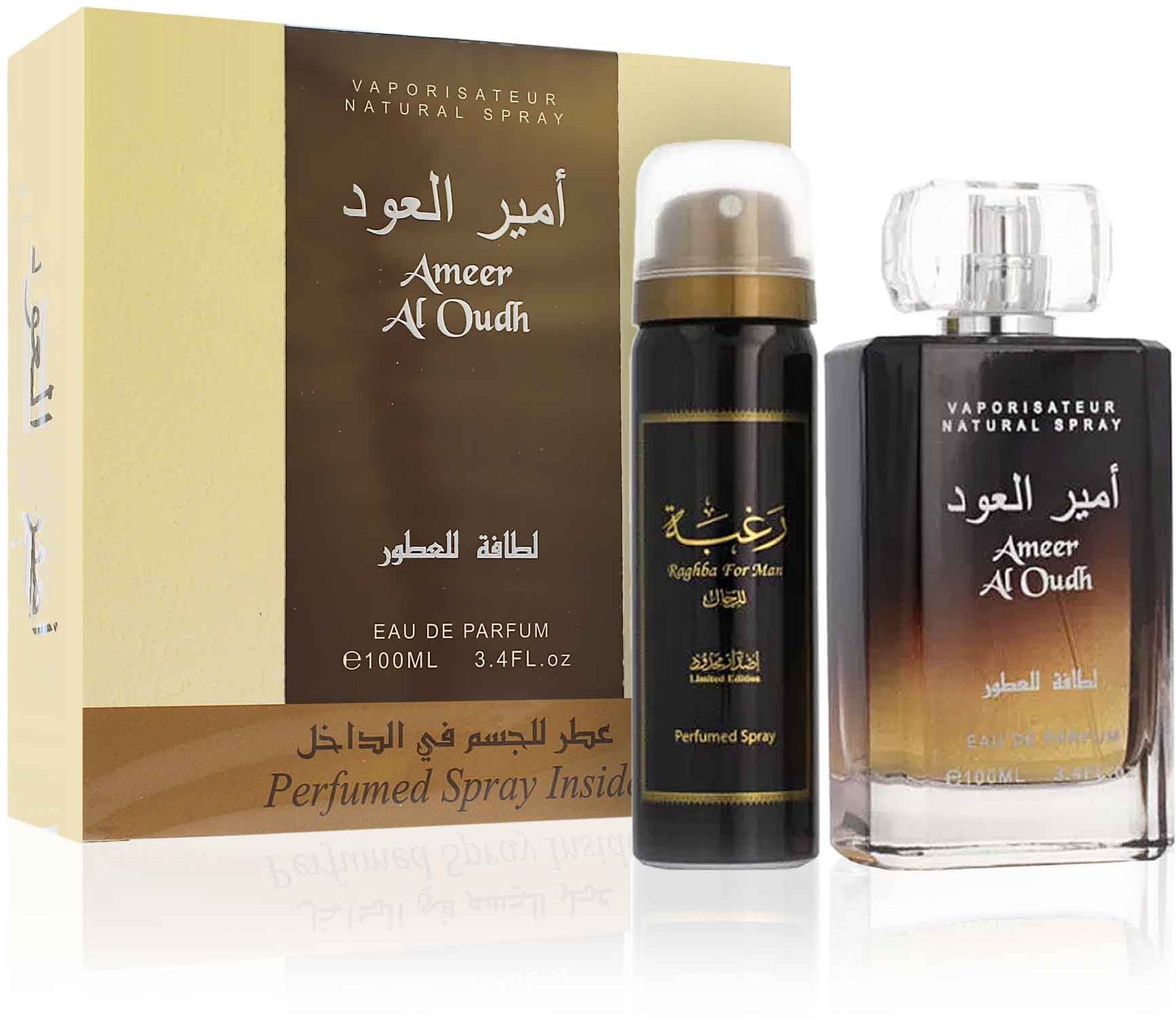 Darčeková sada parfumov – obsahuje: EdP 100 ml, dezodorant 50 ml Darčeková sada parfémov LATTAFA Ameer Al Oudh EdP Set má orientálny nádych. Sada je perfektným darčekom pre mužov aj ženy. Obsahuje jedinečnú parfumovanú vôňu, ktorú skvele dopĺňa dezodorant rovnakého