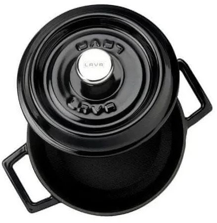 Hrniec – liatinový, vhodný na plynovú, elektrickú, indukčnú a sklokeramickú varnú dosku, okrúhly tvar, objem 1,66 l, smaltovaná rukoväť, nepriľnavý povrch a použitie v rúre, rozmery 9,5 × 19 × 25,5 cm (V׊×D), priemer 18 cm, pokrievka v balení, čierna farba Chcete sa naučiť variť kvalitné a chutné pokrmy? Hrniec LAVA METAL je presne to, čo hľadáte. Praktický hrniec s objemom 1,66 l sa stane vašim skvelým pomocníkom. S jeho pomocou nebude varenie cestovín
