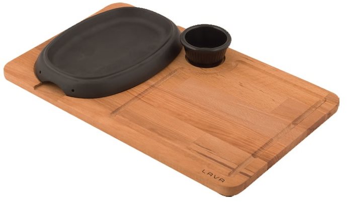 Tanier – drevený, vhodný do rúry, čierna a hnedá farba, plytký a servírovací, univerzálne použitie, oválny, moderný dizajn, 1 plytký tanier, rozmery 2,5 × 19 × 19 cm (V׊×D), hmotnosť 1500 g Zásadné vlastnosti taniera LAVA METAL Liatinový tanier 12 × 19 cm s veľkým dreveným podstavcom Tanier LAVA METAL využijete v domácnosti aj jedálňach Tento plytký tanier je vhodným variantom pre hlavné