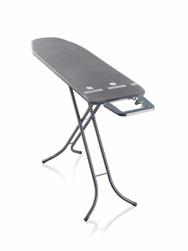 Žehliaca doska – dĺžka plochy na žehlenie 120 cm, šírka plochy na žehlenie 38 cm, výška penovej podložky 4 mm, minimálna výška 690 mm, maximálna výška 880 mm, nastaviteľná výška a držiak na žehličku LEIFHEIT…