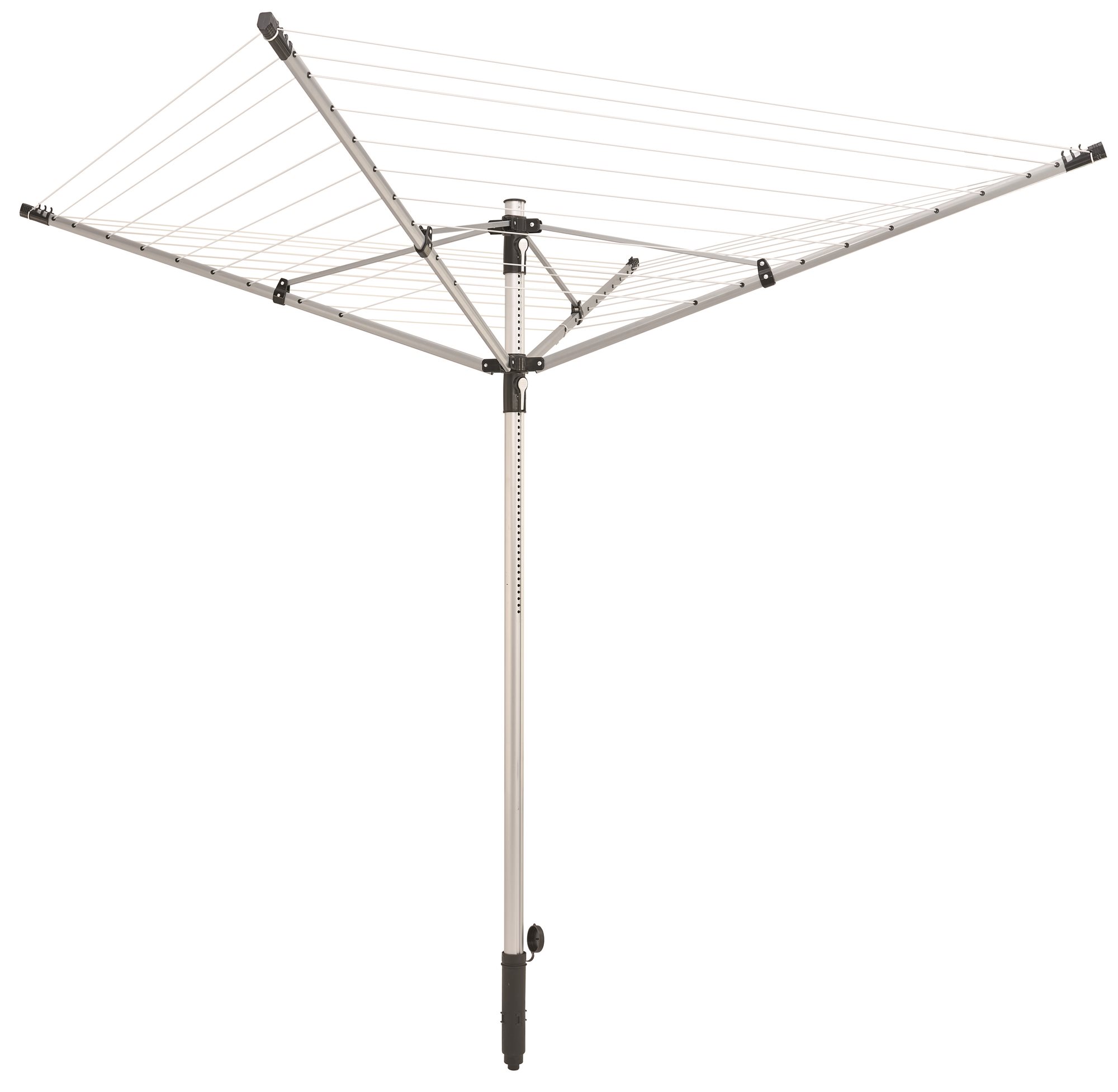 Sušiak na bielizeň – vonkajší, vhodný na zem, otočný a výškovo nastaviteľný, zapichovací, 1 poschodie, celková dĺžka na sušenie 50 m, max. nosnosť 50 kg, držiak na ramienka súčasťou, balenie obsahuje kotviace príslušenstvo a ochranné…