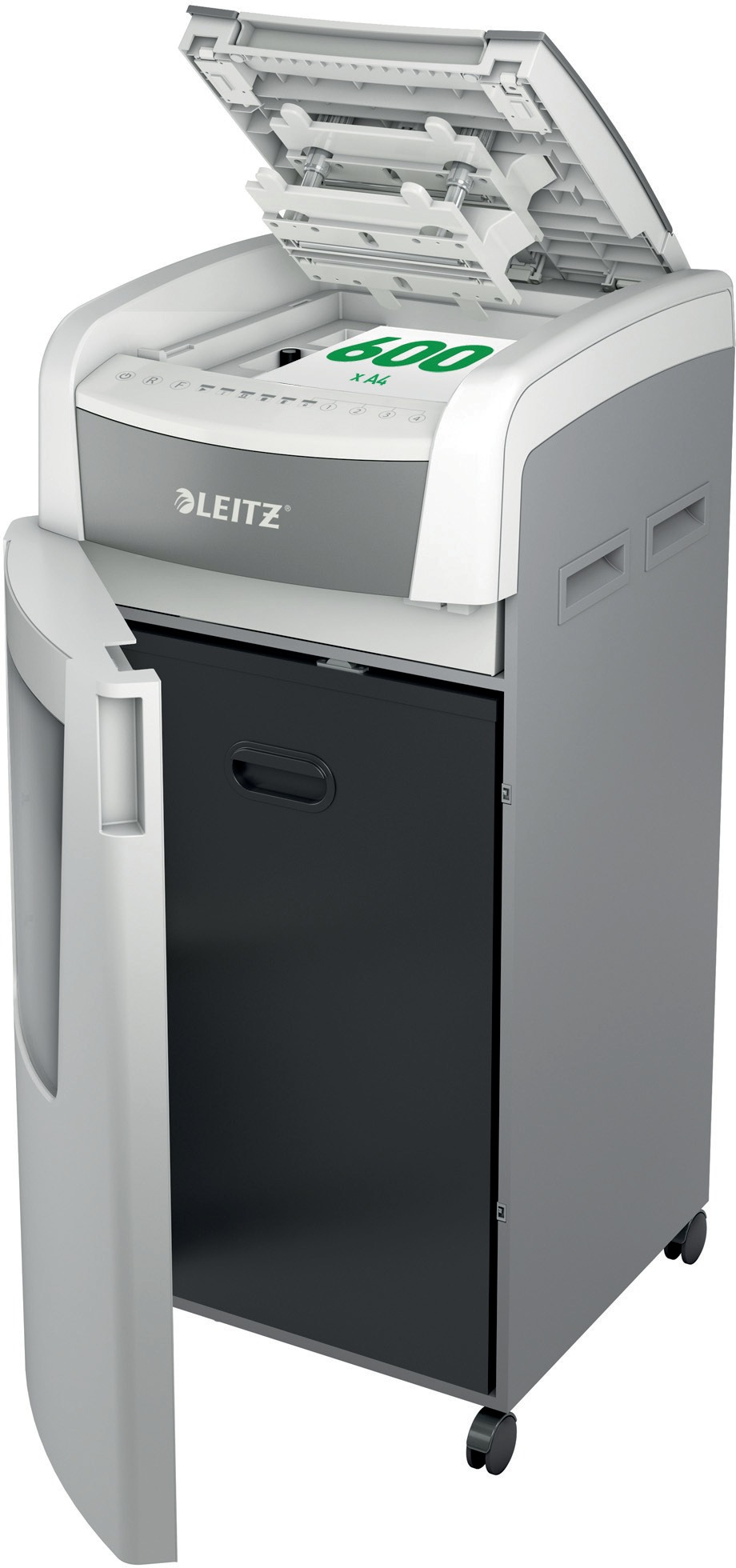 Skartovačka – stupeň utajenia P-4, krížový rez, skartuje až 15 listov papiera gramáže 80 g/m2, okrem toho aj svorky, plastové karty, objem koša 110 l, spätný chod, vypnutie pri prehriatí/preplnení, vyberateľný kôš, start/stop automatický a podávač (automatický) Renomovaná nemecká značka s tradíciou od roku 1871. Skartovačka s automatickým podávačom papiera LEITZ IQ AutoFeed Office Pro 600 P4tichá/výkonná/dizajnová/s automatickým podávanímSkartovačka Leitz IQ