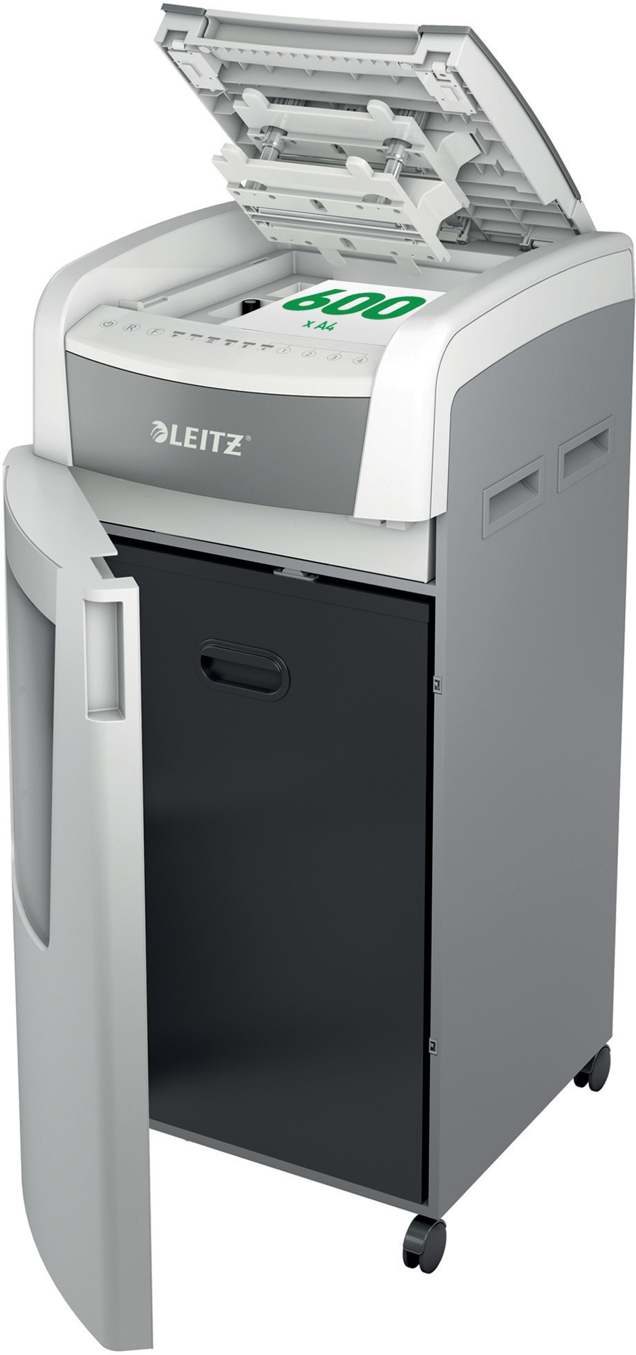 Skartovačka – stupeň utajenia P-5, mikrorez, skartuje až 10 listov papiera gramáže 80 g/m2, okrem toho aj svorky, plastové karty, objem koša 110 l, spätný chod, vypnutie pri prehriatí/preplnení, vyberateľný kôš, start/stop automatický a podávač (automatický) Renomovaná nemecká značka s tradíciou od roku 1871. Skartovačka s automatickým podávačom papiera LEITZ IQ AutoFeed Office Pro 600 P5tichá/výkonná/dizajnová/s automatickým podávanímSkartovačka Leitz IQ