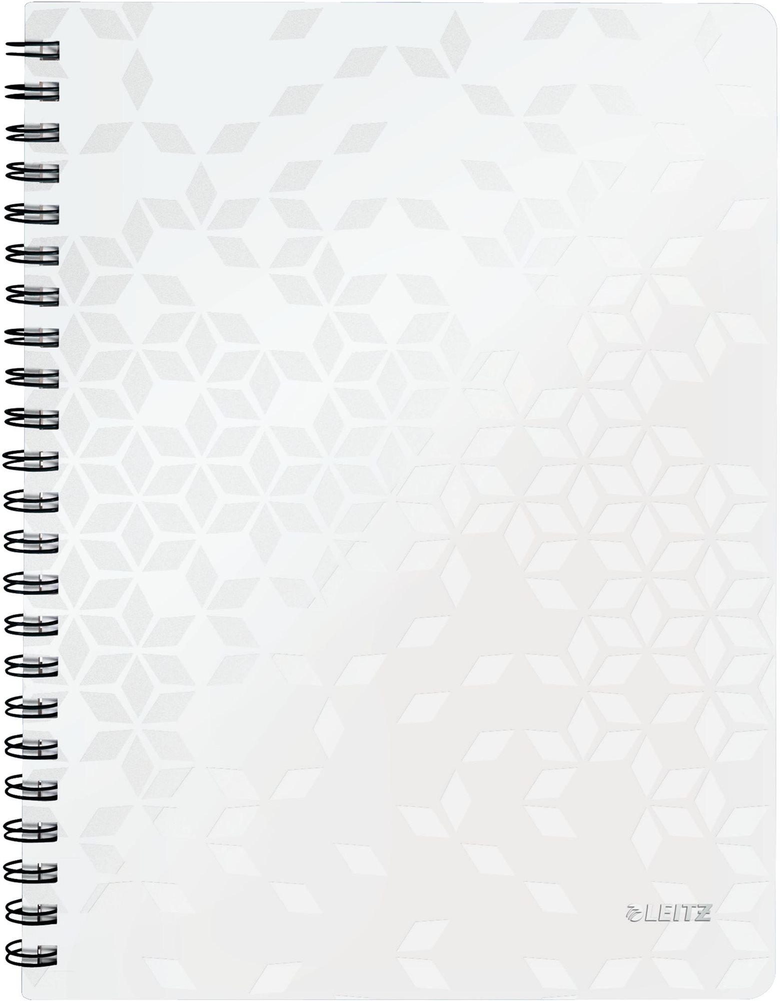 Poznámkový blok – formát A4, 80 listov, linajkový papier, tvrdá väzba, materiál dosiek polypropylén, krúžkový chrbát, s mikroperforáciou, biela farba Vzhľadovo atraktívny aj dokonale funkčný výrobok. To je linajkový poznámkový blok vo formáte A4 v krúžkovej väzbe značky Leitz z dizajnovej série WOW, ktorá ponúka rôzne produkty v niekoľkých žiarivýc