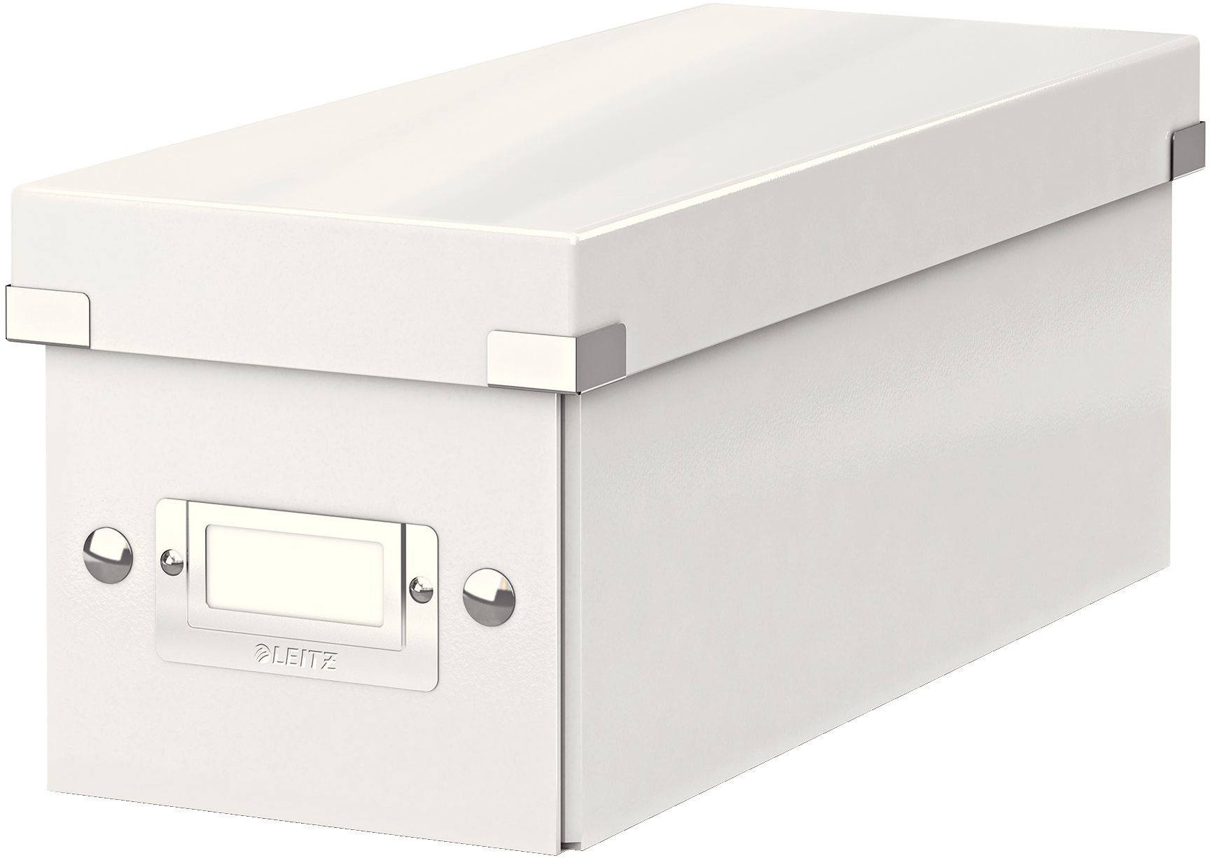 Archivačná krabica určenie CD, materiál kartón, kovové rohy, popisovateľný štítok, samostatné veko, laminovaný povrch a skladací, farba biela, objem 6,85 l, výška 13,6 cm, šírka 14,3 cm, hĺbka 35,2 cm Archivačná škatuľa Leitz WOW Click & Store CD je ideálna na uloženie a organizáciu CD i iných predmetov. Vyrobená je z hrubého kartónu a vybavená laminovaným povrchom a kovovými rohmi, ktoré ju ch