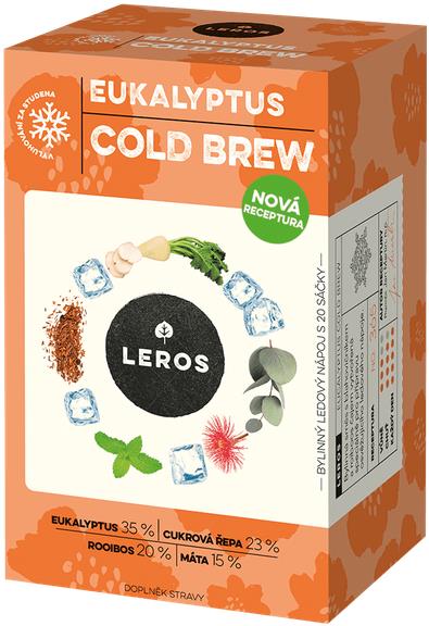 Čaj – bylinný, vrecká, čajová zmes, hmotnosť 20 g, zloženie mäta LEROS Eucalyptus Cold brew20 nálevových vrecúšokLEROS Eucalyptus Cold brew predstavuje bylinnú zmes určenú na prípravu ľadového nápoja. Obsahuje eukalyptus, cukrovú repu, rooibos, mätu piepornú aj čer