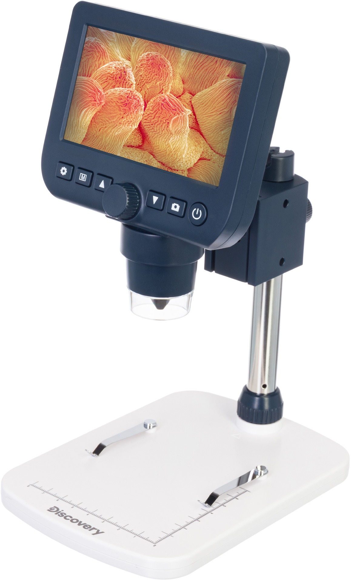 Mikroskop – laboratórny, digitálny, zväčšenie od 20× do 300×, funkcie osvetlenie, fotoaparát a kamera, batéria, napájací adaptér a LCD displej, digitálna obrazovka (PC monitor), rozmery 12 × 16,5 cm (Š×H), čierna farba Digitálny mikroskop Levenhuk Discovery Artisan 64 sa ľahko používa, pretože je vybavený vstavanou LCD obrazovkou. Vďaka tejto vlastnosti nie je nutné mikroskop pripájať k počítaču, ale v prípade potre