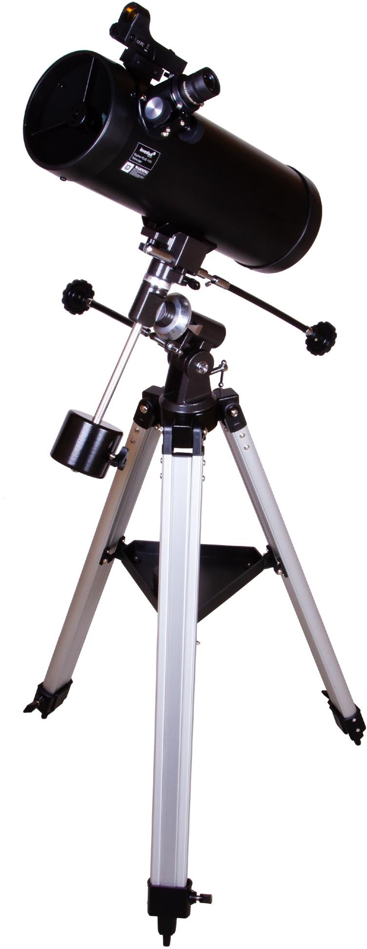 Teleskop – s maximálnym zväčšením 228×, priemer objektívu 114 mm, ohnisková vzdialenosť 450 mm, limitná hviezdna veľkosť 12,38, nočné videnie,, vymeniteľný okulár a hľadáčik súčasťou, paralaktická montáž, rozmery 23 × 36 × 82 cm (V׊×H), hmotnosť 9380 g, čierna farba Teleskop Levenhuk Skyline PLUS 115S je Newtonov reflektor s krátkym ohniskom určený na pozorovanie hlbokého vesmíru. Vďaka veľkej apertúre sústredí veľké množstvo svetla a umožňuje tak pozorovanie aj
