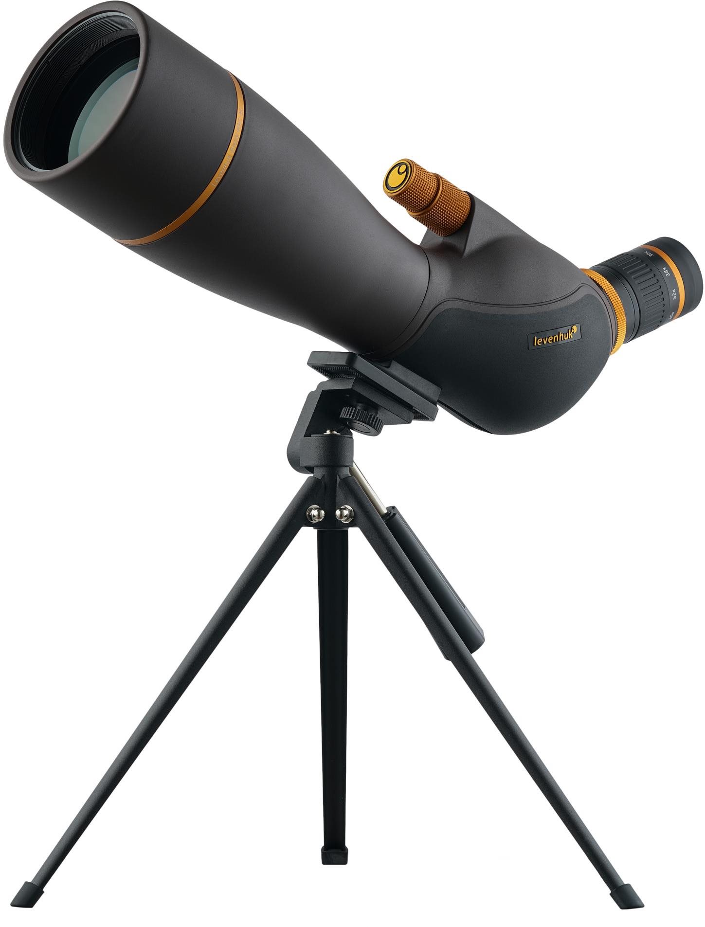 Ďalekohľad – turistický, monokulár, 60× zväčšenie, najkratšia zaostriteľná vzdialenosť 6 m, priemer objektívu 80 mm, skutočné zorné pole 2°, šírka zorného poľa na 100 metrov 35 m, vodoodolný, plnený dusíkom, antireflexný a s možnosťou prichytenia na statív, funkcie zoom, vo výbave čistiaca handrička, krytka objektívu, kryt okulára, puzdro a statív, rozmery 20 × 12 × 45 cm (Š×V×H), hmotnosť 1,423 kg, hnedá farba Spektív Levenhuk Blaze PRO 80 je výkonný optický prístroj s veľkou apertúrou, určený na štúdium prírody. Je ideálny pre poľovníkov, ornitológov a prírodovedcov. Široký rozsah zväčšenia umožňuje pozoro