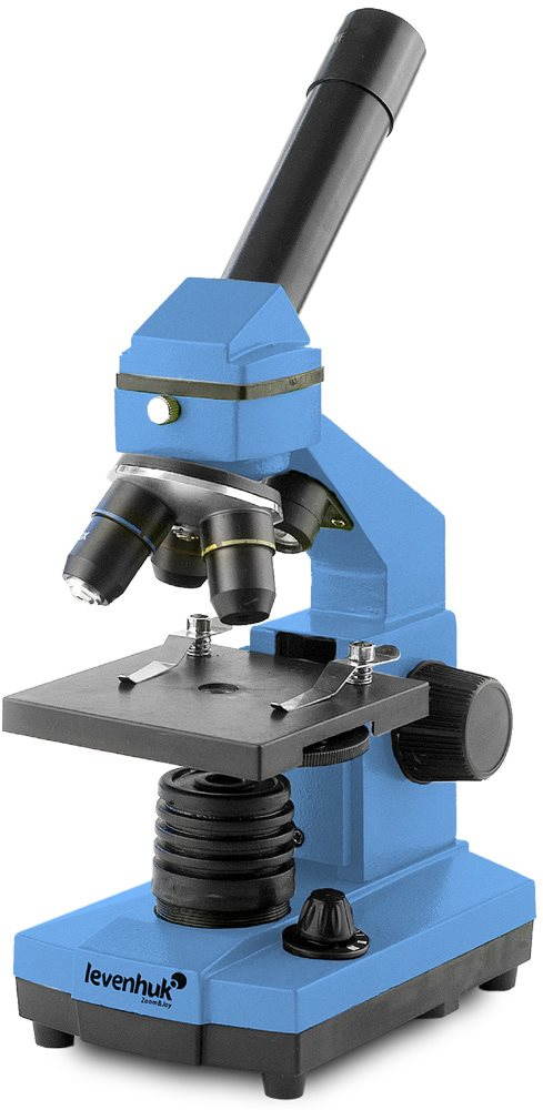 Mikroskop – detský a školský, svetelný, optický, zväčšenie od 40× do 400×, funkcie osvetlenie, monokulárny, rozmery 36,5 × 13 cm (V×H), modrá farba, hmotnosť 1,65 kg Školský mikroskop Levenhuk Rainbow 2L sa dodáva so všetkým, čo je potrebné na prvé biologické experimenty. Optika mikroskopu je vyrobená zo špeciálneho vysoko transparentného optického skla. Optické p