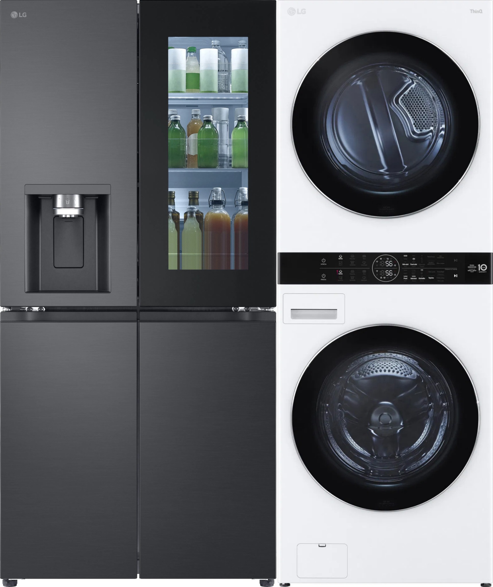 Set spotrebičov – štvordverová americká chladnička LG GMG960EVEE + set práčka a sušička LG WashTower WT1716WWF Nie je vyplnený Alternatívny text k fotografii!Chladnička LG GMG960EVEE + 10 rokov záruka na kompresorAmerická chladnička LG GMG960EVEE vás ohromí nielen kapacitou 638 litrov, ale aj množstv