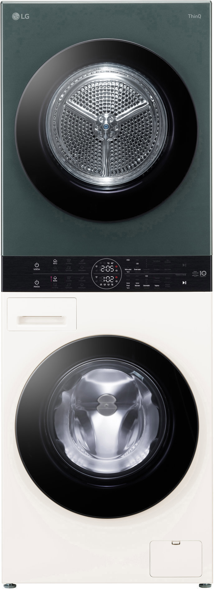Set práčka a sušička – Práčka: s predným plnením, energetická trieda A, kapacita práčky 12 kg, spotreba energie 49 kWh/100 cyklov, vážená spotreba vody na cyklus 57 l, hmotnostná automatika, Fuzzy Logic, 1350 ot./min pri odstreďovaní Sušička: kondenzačná, energetická trieda C, kapacita 10 kg, spotreba energie 113 kWh, samočistiaci kondenzátor, odložený štart, tepelné čerpadlo, displej, vnútorné osvetlenie, ovládanie mobilom a zvukový signál ukončenia programu, osvieženie a odstránenie pachov a snímanie vlhkosti, rozmery 60 × 165,5 × 66 cm (Š×V×H) Smart funkcie: možnosť pripojenia cez WiFi, kompatibilita s LG ThinQ, diaľkové ovládanie, diagnostika porúch a monitoring spotreby Parná práčka so sušičkou LG WashTower WT1210EGFVyzbrojte si domácnosť na nikdy sa nekončiaci boj so špinavou bielizňou. Medzi najväčšie inovácie patrí určite vyhotovenie do veže WashTower™, s ktorým v